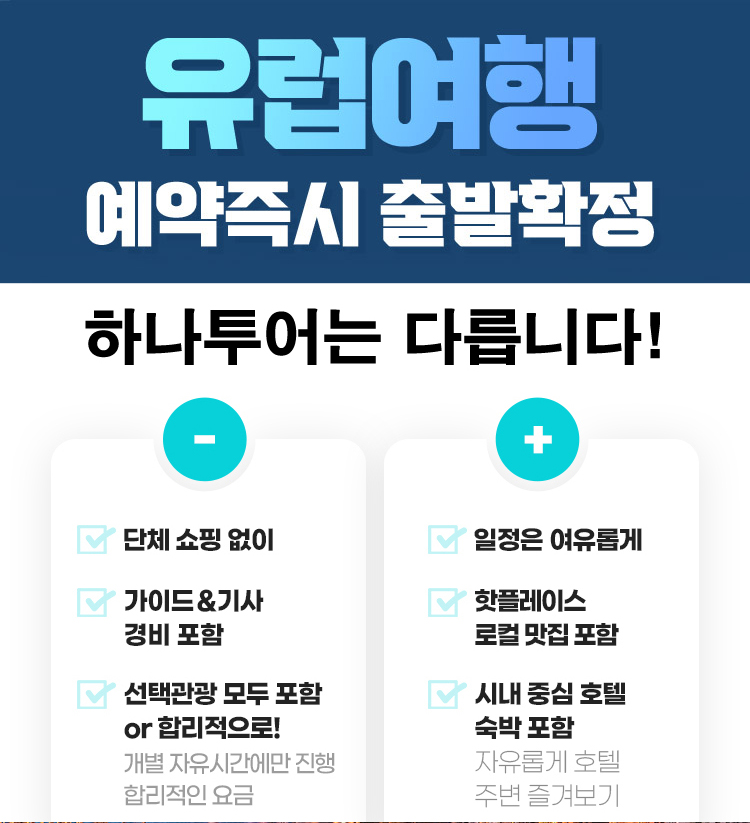 단체 쇼핑센터 방문 일정을 배제하고 선택관광은 합리적인 가격에 제공, 추가부담 없이 가이드 기사 경비 포함