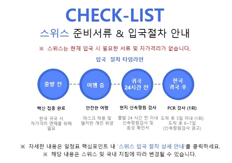 스위스 입국전 안내사항